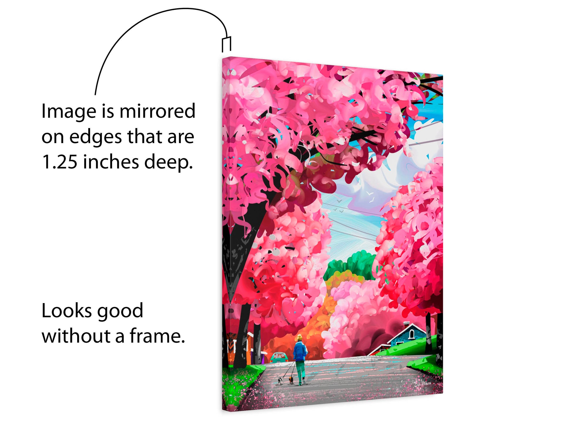 - canvas surface is satin-ish to bring out the rich colors without glare.